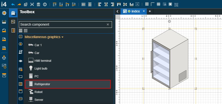The i4designer Refrigerator is an SVG graphic component capable to display multiple states based on different signals.