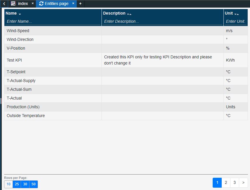 The i4connected Entities are listed in a tabular format, where each column features a simple filtering mechanism, allowing the user to easily establish the availability of an entity.